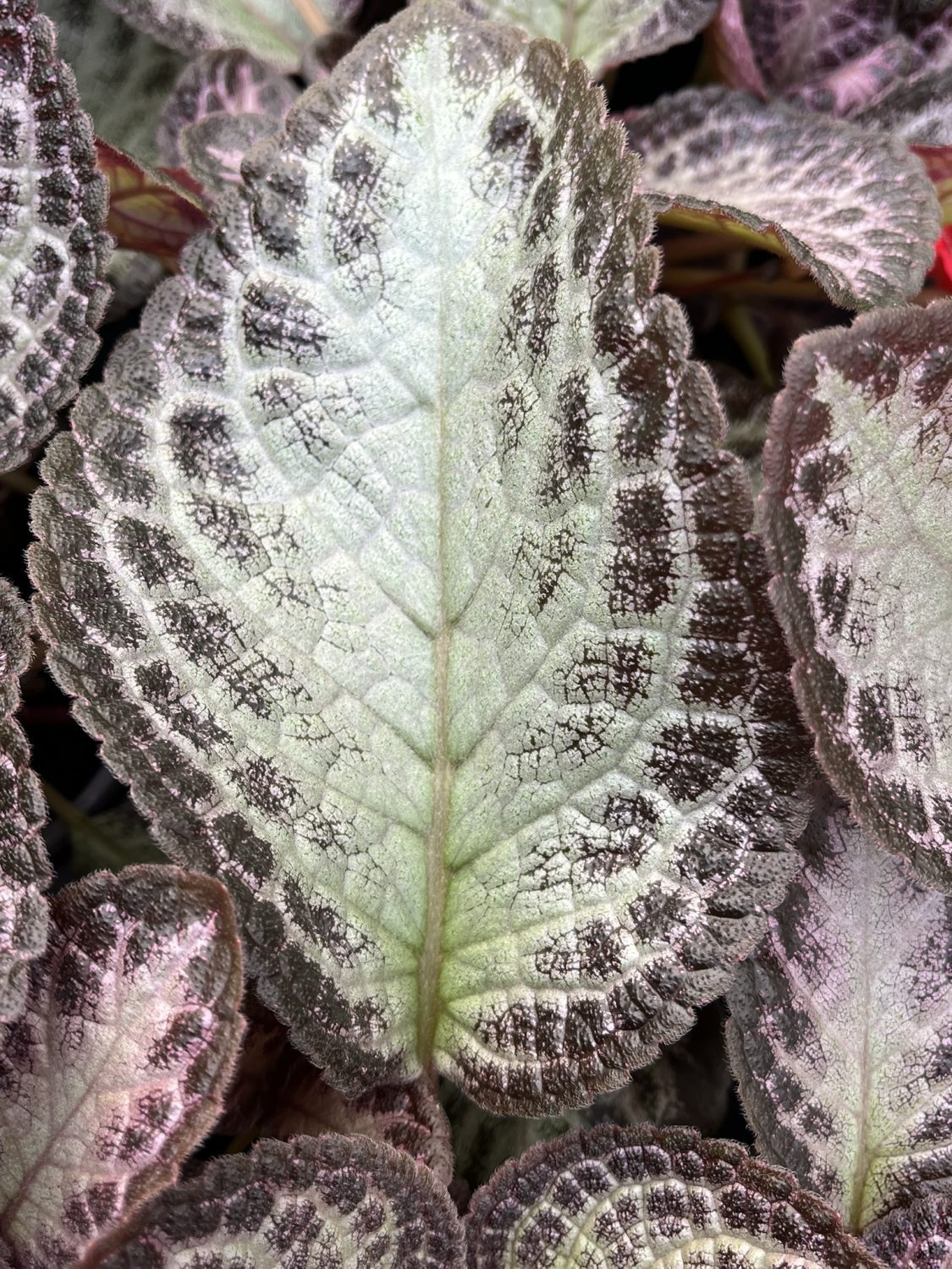 - Silver velvet foliage. Icy, luminous leaves with dark green veins and a soft nap.